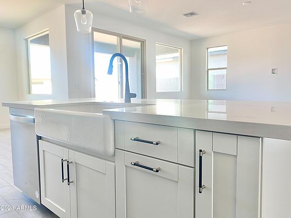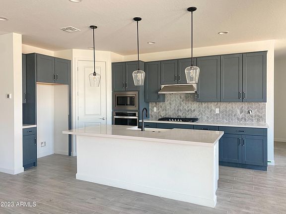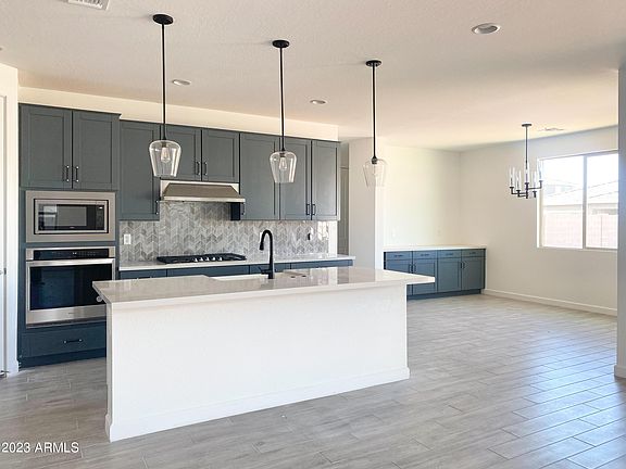 Lovely Daisy floorplan with exterior Farmhouse elevation with private bedroom and bathroom on the first floor. 5 bedrooms, 4.5 bathrooms, loft and 3 car tandem garage. The beautiful kitchen has stainless steel appliances, 36'' gas cooktop with 5-burners, 42'' upper kitchen cabinets, tile backsplash, quartz countertops, Kohler Whitehaven porcelain sink and matching cabinets in dining room. Huge Walk-In Shower at Master Bathroom, wood plank floor tile in the main living areas. 8' interior doors, upgraded plumbing fixtures, upgraded light fixtures, ceiling fan prewires in all Bedrooms, Loft & Great Room, soft water loop, front yard landscaping, pavers on driveway/walkway and much more.