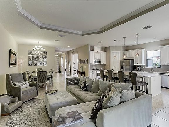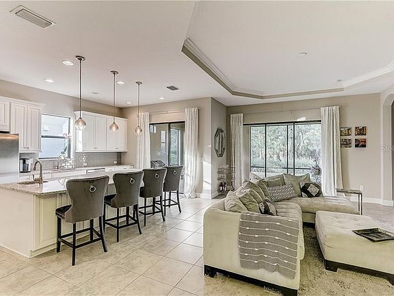 Welcome to Esplanade Artisan Lakes, Resort Style living Gated Community. MOVE IN READY! Gorgeous 4 bedroom 3 bath home. 4th Room easily converts to Bedroom with solid sliding pocket doors that lock and oversized window or can be used as office/den. Built in Value the day you buy! This Lazio, Taylor Morrison floor plan has 8 foot doors, large windows for lots of natural light. As soon as you walk in you are welcomed with a beautiful open floor plan and a view of the green nature preserve out back, Trey ceiling in the entry way with custom crown molding. The kitchen is large and spacious with a designer oversized granite island with a prep sink to make cooking easy and effortless overlooking 5 1/2 foot sliders that open up to a covered lanai. Stainless steel appliances and classic white wood cabinets with upgraded gas stove. The living room has upgraded trey ceiling with custom crown molding overlooking 8 1/2 feet of floor to ceiling sliders, that all open up to a screened in lanai and an oasis nature preserve out back. This home is perfect for entertaining as it has an oversized covered lanai that backs up to a nature preserve with a complete outdoor kitchen hook up and gas grill staying with the house. Plenty of room for a POOL to be installed in backyard. The master bedroom has large bay windows, with trey ceiling, black-out blinds, master bathroom has dual sinks with granite counter tops and an oversized shower with a separate toilet room. The walk-in master closet is as big as bedroom and is more than plenty for his and hers. Comes with Gas Grill, Washer and Dryer. What makes this home stunning, is its open floor plan with a clean modern look, open slate for your imagination to make it your dream home. The location is perfect for barely any traffic on this street of the community with the col de sac to enjoy the quiet preserve that will never have a home built behind it. This home is move in ready for you to enjoy resort style living. The community amenity center is over 9,000 sq feet with a 24-hour fitness and yoga room, a pool table room, banquet room that holds 150 people that overlooks the pool and lake, meeting rooms, massage rooms and it features a lagoon style pool, another circular resistance style exercise Pool, a hot tub, a fire pit along with miles of nature walking trials, a butterfly garden, tennis courts, pickle ball courts solely to be used by the Esplanade Artisan Lakes homeowners. Publix, 7/11 gas station and pizza shop right around the corner. Conveniently located close to Interstate 75 and 275 for easy commutes to Tampa, 20 minutes to St. Petersburg, Sarasota and Central Florida's world-famous beaches. This home is a must see, Come and make this beauty yours!