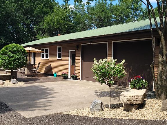 Welcome to this beautifully updated 3-bedroom, 2-bath rambler nestled on 1.6 professionally landscaped acres in Monticello Township. Enjoy the serenity of country living without sacrificing convenience—located just three miles from Monticello, this property also offers easy access to the Albertville Outlet Mall, Riverwood National Golf Course, and Norin Landing on the Mississippi River. With no HOA fees and no future development in this quiet neighborhood, privacy and open space are yours to enjoy. Inside, the home blends rustic charm with modern upgrades, featuring a handcrafted custom railing and red cedar trim throughout the main level. The kitchen is warm and inviting, equipped with stainless steel appliances, hickory cabinets, and premium laminate countertops that beautifully balance style and function. One of the many standout features is the oversized 2+ car insulated garage, heated and cooled for year-round comfort—ideal for a workshop, maintaining your vehicles, or an epic man cave. Outside, enjoy virtually maintenance-free living with professionally designed and installed landscaping that includes striking boulder walls and two patios: a tranquil space in the backyard and an exquisite front yard patio that elevates curb appeal. The custom-built stonework extends to a fire pit, custom stone benches, and a signature stone table, creating an outdoor retreat that’s perfect for relaxing or entertaining under the stars. The backyard features a second patio where you can sit and enjoy your beautifully manicured lawn that complements the surrounding professional landscaping. The backyard is framed by a 10' x 40' lean-to shed and a leveled pad, perfectly prepared for a future outbuilding or pole barn—adding both functionality and expansion potential. Downstairs, the finished basement offers an additional bedroom, full bathroom, walk-out family room, convenient laundry area with updated washer and dryer, plus a flexible bonus room with added storage-- for an office, gym, or playroom. Major mechanical updates include a brand-new central air conditioner (Spring 2025), water heater, water softener, and pressure tank—all installed in Spring 2023. Additional highlights include an Amana high-efficiency furnace, private well, and reliable mound system. With a steel roof, vinyl siding, and easy-clean windows all under 10 years old, this home blends charm, comfort, and low-maintenance living—ready for you to move in and enjoy right away.