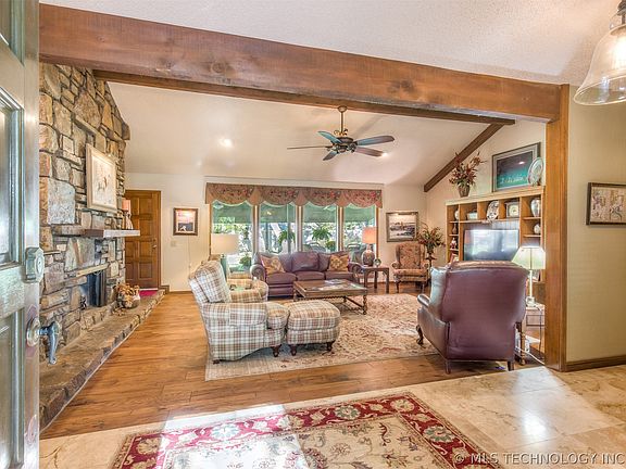 This single story home has a lot of updates you will love and has been well cared for! Located in a highly desirable area on over 1/3 acre, this home features a spacious kitchen with granite countertops, island, built in desk hutch, pantry and nook! Two sided wet bar to enjoy while in the kitchen and great room which has an impressive fireplace and beamed ceilings along with a span of windows for wonderful natural light! Newer hardwood floors, travertine tile, updated fixtures, flexible dining room space, beamed ceilings, remodeled master bathroom with large walk in closet! A Plush lawn and Large covered cedar deck patio with ceiling fans and extra walkways complete this beautiful home.