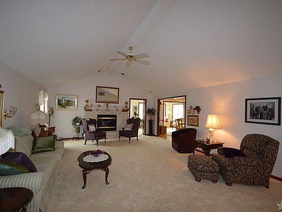 Meticulously maintained sprawling ranch on beautiful lot overlooking the lake in Chandlers Landing! This custom ranch boasts almost 2900sqft w/3bdrm & 2.5 baths, lots of lake views! Spacious 23x18 GR w/gas fireplace. LR w/crown molding, custom built-in desk area. Formal DR w/crown molding, chair rail & window seat. Sun Room w/wall of windows overlooking the lake! Gourmet kitchen remodeled w/stainless steel appliances, water filter at sink, large island w/bar, raised panel cabinets, planning desk, endless storage! Master Suite w/2 walk in closets, trey ceiling & full bath dbl vanity. This home boasts: Ample storage & all closets w/automatic lights, alarm system, intercom system, built-in speakers, automatic attic fan, handicap rails, central vac, all new windows tinted & some w/built-in blinds, Hunter Douglass blinds, newer water heater, Jenn-air humidifier & 3 yr new furnace/air. 3 car garage w/floored attic, peg board, built-in cabinets & counter, slop sink & shelves. Spacious laundry room. Low maintenance landscaping w/rose bushes, rocks, irrigation system, large deck w/ pergola! Residents can enjoy walking paths, fishing, paddle boat stays, gazebo & swimming!