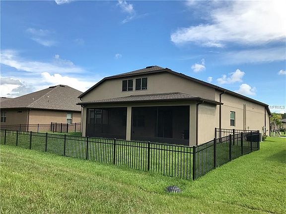 NEW Hardwood Floors installed! 2-story Dockside Model 4496 total sqft under roof/3411 sqft living area has 4 BR, 2.5 BA + huge 900+ sqft multi-use bonus area for family/media/exercise room or convert to more bedrooms. 3-car tandem garage bay for workspace/storage. Open concept floor plan offers upgraded kitchen w/custom island, backsplash & cabinet hardware, SS appliances, huge pantry, barn doors opening to 36x10 privacy enclosed brick-paved lanai with breath-taking views of a tranquil conservation area. Spacious Great Room & Dining room features custom-built brick/shiplap electric heating fireplace. Home is excellently laid out for entertaining & holidays are extra special with your favorite décor & stockings hung on the fireplace! Master Bedroom offers huge walk-in closet. All bathrooms upgraded to granite countertops, & higher counter & commode height. 8 FT doors throughout the home. This premium homesite has a fenced-in backyard, security cameras and motion light detectors on front and back of the home, built-in pest control tube system & has low energy costs due to having 2 high-efficiency A/C units/R38 attic/radiant ceiling plus an attic exhaust fan w/thermostat. Community Amenities: 6,500 Sq. Ft. Amenity Center w/FT Activities Director, Jr Olympic heated pool, Fitness Center Game Room; Lighted Tennis Courts; Multi-Purpose Recreation Field and Barbeque Pavilion 5.5+ Miles Walking NatureTrails, etc. Harrison Ranch is a new home community just south of Tampa & north of Sarasota.