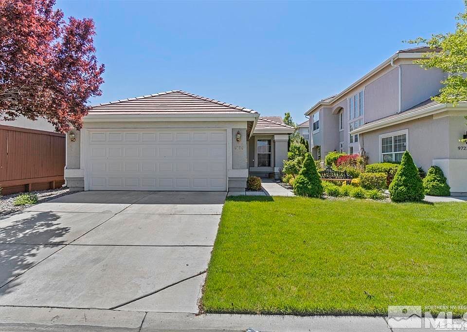 Gated community, clean, move-in ready single story in South Meadows home is available now! Close by walking paths, community pool and clubhouse. Don't let the square footage deter you, high ceilings and huge windows allow natural light to pour into this home for an open and airy feel. Two bedrooms, two bathrooms, two car garage, quick access to Hwy 395, 45 minutes to Tahoe, this is the perfect home base to establish in Reno. Gorgeous views out the front door, and paved walking paths only minutes away., Master suite features a double vanity, shower stall and walk in closet. Murphy bed in secondary bedroom to convey with the sale. Refrigerator/Washer/Dryer included in as-is condition. Personal belongings in garage to be removed prioer to COE. This is a probate sale subject to court approval and overbid.