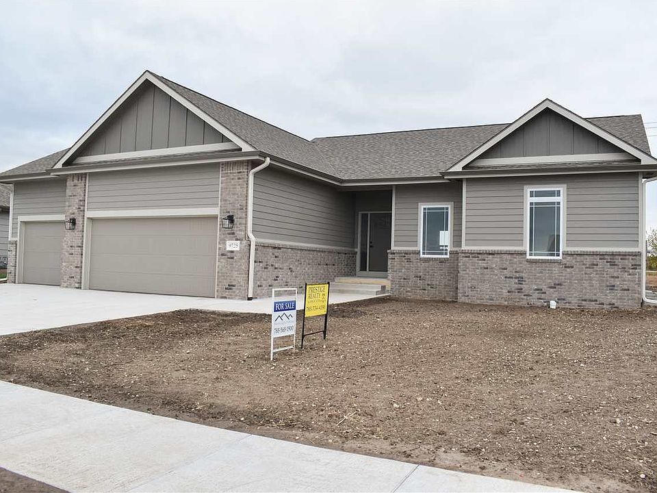 This home is a spacious ranch style home located in the very popular Whispering Meadows Addition in Pottawatomie County, Kansas. It has just under 3000 total square feet of living space. The master and one additional bedroom are located on the main floor. The master suite has a large master bath with dual sinks, tiled shower, oversized master closet and attached utilitiy room. Also on the main floor is the open kitchen with island sink, walk in pantry, dining area, living room, mud room and second bath, ALL areas have ten foot ceilings. Located in the lower level are bathroom number 3, large family room, wet bar and bedrooms three, four and five. We also included a safe room for further security. Like the rest of the home the 3 car garage is ample in size with lots of room for storage shelving. The rear patio is located on the east side of the home and is covered for protection from the elements.