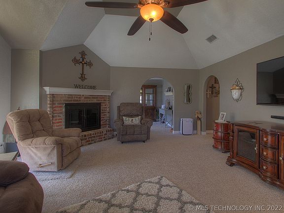 Beautiful white picket fence and a corner lot welcome you home to this wonderful Cedar Ridge property! Updates throughout including many energy efficient features. Step in to your spacious living room with fabulous corner brick fireplace. Natural light streams through the ample windows and highlights the vaulted ceilings. The kitchen is superbly updated and features custom tile, lovely granite and gleaming stainless appliances! Two separate dining areas, good sized bedrooms and great outdoor space!!