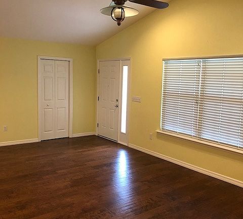 This home sits on a 1-acre lot in Hammock Ridge, off of Archer Road. The home is a 3-bedroom, 2-bathroom open floor plan with wood and tile floors throughout. Master bedroom has vaulted ceiling with large walk-in closet, spacious guest rooms and interior laundry room. Home features a double garage and covered patio. Close to shopping and dining. Lawn Care is tenants' responsibility. Well and septic system, Clay Electric is utility provider.