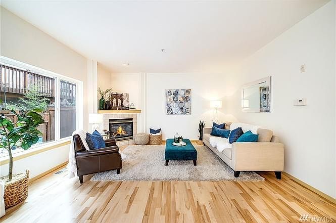 A rare find in West Seattle - Large townhouse (built in 2003) in gated community with tons of shops and restaurants nearby on 16th Ave SW, and only a few minutes to Westwood Village. Easy access to downtown in 15 minutes and close to bus line. Recently renovated kitchen and refinished hardwood flooring. Townhouse has a great family layout and lots of space with only one shared wall. Main floor has open floor plan with newly refinished hardwood floors throughout living room, kitchen, dining room and half bath. Kitchen features new countertops, backsplash & sink/faucet, plus garbage disposal, dishwasher, stove, microwave, refrigerator and pantry are included. Upper level has laundry room (washer/dryer included) and 3 bedrooms + 2 full baths featuring a large master with vaulted ceilings, master bath, walk in closet and gas fireplace. Plenty of parking with a large two car garage, plus guest parking. Gated community includes common space with bbq, picnic tables and grass play area. Homeowner's association fee fully paid by owner. First and last month rent due at signing, plus security deposit. Renters are responsible for water, gas, sewer and garbage fees.