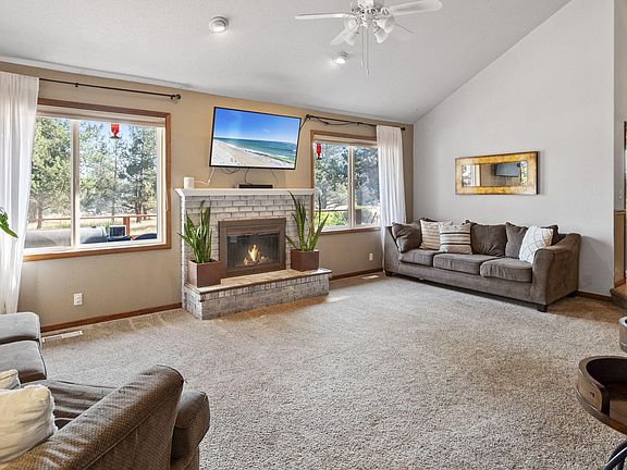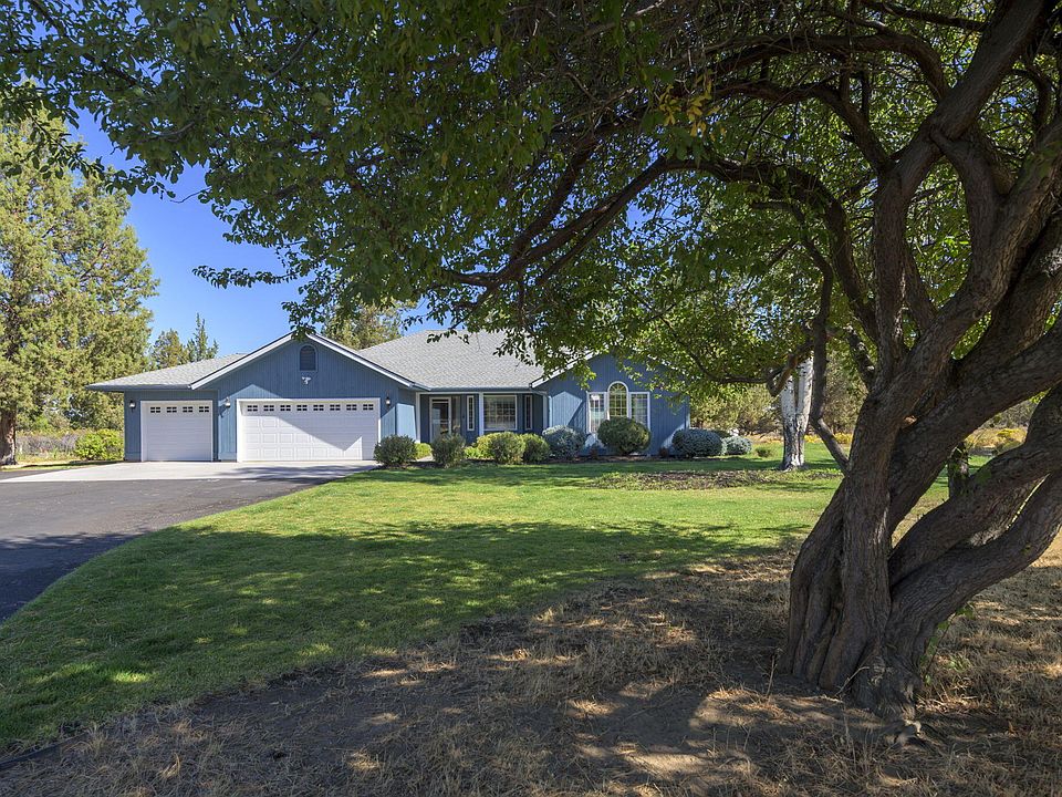 This beautifully crafted custom home, featuring hand-built trusses, sits on a 5.08-acre corner lot, fully fenced and gated for privacy. Ideally located minutes from Eagle Crest, Redmond, and 15 minutes to Sisters, Tumalo, and the Redmond airport, this peaceful retreat is also near BLM land and the Deschutes River. The property offers a fenced garden, greenhouse, and room for an RV and boat. The expansive deck, running the length of the home, is perfect for entertaining. Inside, you'll find 3 spacious bedrooms, 2 bathrooms, and a fully enclosed sunroom ideal for an office or flex space. The vaulted living room has a wood-burning fireplace and offers views of the front and back yards. The kitchen features slab quartz counters, opens to a cozy eating area, and includes a breakfast bar. The primary bedroom offers French doors to the deck, two walk-in closets, and a soaking tub. Updates include a new roof, heat pump, and furnace 12 years ago. Come discover this peaceful country oasis.