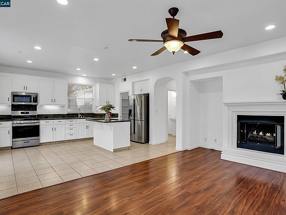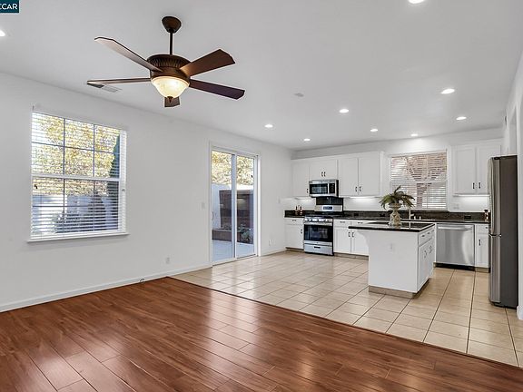 Beautiful private home with no neighbors behind. Offering 3 bedrooms plus a large room on the first floor (which can be prepared as a 4th bedroom, or as a spacious office), 2.5 bathrooms, owned SOLAR , Family room with fireplace, gourmet kitchen with granite counter, gas cooktop, refrigerator, washer, and dryer. 2 car garage with many storage cabinets and more storage space for other use. Close to shopping centers, restaurants, parks, freeway, and all highly achieved schools. great neighborhood. A low HOA fee of only $175/ month offers pool / spa, playground, and trails.