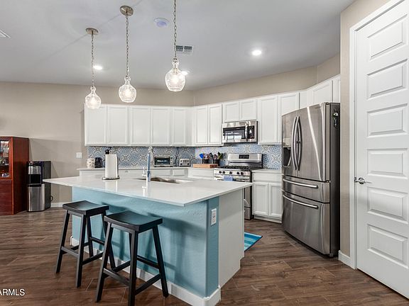 Check out this beautiful Lennar Sage floor plan in Mesa's Eastmark! There 4 bedrooms and 3 bathrooms! The designer touches in the kitchen include pendant lights and a beautiful tile backsplash. The master bedroom has a barn door to the bathroom and an oversized shower too. The backyard is a relaxing place to be. Home backs up to the disc golf and walk way with no homes behind! Extra storage in garage for all of your stuff. Gilbert School district! Make an appt to see this home today!