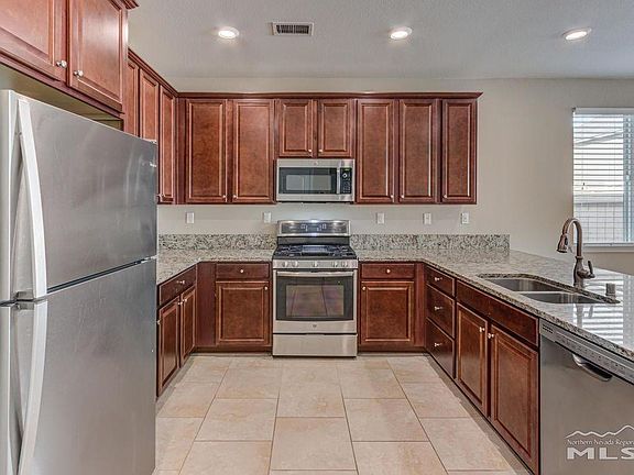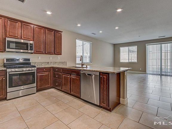 Impeccable Lennar home in Damonte Ranch! This stunning 1877 sf single story 4 bdrm, 3 bath, 2 car garage home features an open concept floor-plan. Upgrades include staggered tiles, granite slab counters, stainless steel appliances, tank-less water heater & LED lights throughout. Faux wood blinds on the windows, kitchen refrigerator, washer and dryer are also included! Close to schools, trails, greenbelt and shopping. Low maintenance backyard complete with paver patio makes for the perfect place to relax.