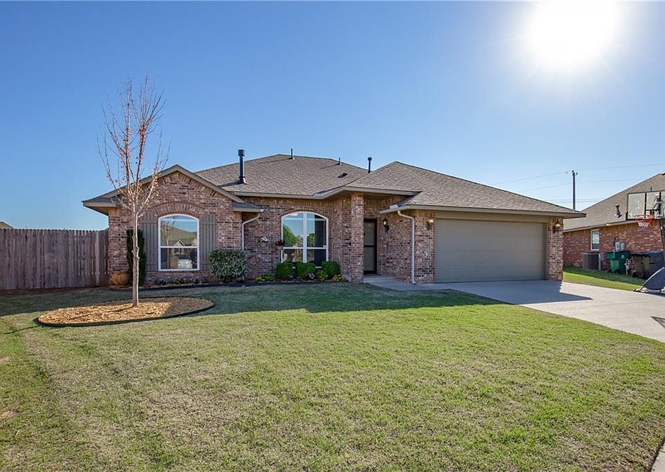 Welcome Home! This one owner home is like new, well kept! Beautiful landscaped front yard greets you. This 3 bedroom, 2 bath home is very spacious and open, split floor plan. Living area open to the kitchen with gas log fireplace, cozy for winter nights. This kitchen is great for entertaining, with large dining area. Both guest bedrooms are generous in size with nice size closets. Enjoy the large backyard enough space for a pool, has a nice storage shed to store all your lawn equipment. Storm Shelter in garage floor. New Carpet in the bedrooms, new hot water tank, new garage door opener, and fresh paint inside. Close to I-40, outlet mall, shopping, restaurants and the airport.