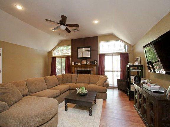 3/2/2. Open floor plan with vaulted ceilings. Kitchen has an island with eat-in kitchen area. It includes range/oven, dishwasher, microwave, and disposal. Beautiful black marble countertops with dark wood finish on cabinets. Tile flooring in the kitchen and dining room lead to entry and hall. Living room has hard wood flooring and a programmable ceiling fan with a light. Open windows to the back yard. Gas brick fireplace with wood mantle. House has an alarm system, and programmable thermostat on the central heat and air unit. Separate utility room with cabinets. 2 car garage with opener, attic access, and work bench. 2 smaller bedrooms have programmable ceiling fans, large closets, and berber carpet. Master bathroom has sliding door access to porch. Master features programmable ceiling fan, 2 master closets, and newer paint and carpet. Master bathroom vanity features double sinks, and separate shower and toilet. Back yard has unique stone steps, and a beautiful porch. Privacy fence around a corner lot. Home has easy access to the Creek Turnpike, as well as all of the beautiful South Tulsa attractions. Jenks schools!