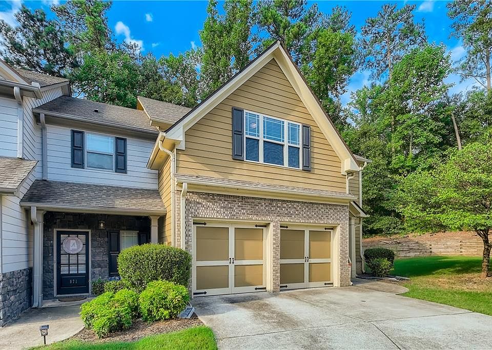 Well maintained adorable 2-story townhome with 3 bedrooms, 2.5 baths, 2 car garage located minutes from Marietta Square. This is an end-unit that sits on a cul-de-sac in a gated community. Home features 9' ceilings, open concept arched entrances & columns with custom bookshelf nook, hardwood floors throughout main level, stairs and upper level hallway. Kitchen has been upgraded with granite countertops, large 42' cabinets and custom pantry with high end appliances. Huge primary bedroom with vaulted ceiling, walk-in closet and large ensuite double vanity, with separate shower and tub. Secondary bedrooms are very large with nice size closets. Patio overlooks private wooded lot. Close to restaurants and shopping. Seller willing to pay up to $5,000 in closing costs