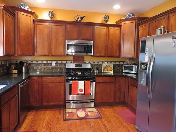 This home features four bedrooms, 2.5 baths, hardwood floors on entire first floor. Sliding door in dining room leads out to large backyard with patio. Kitchen includes maple cabinets, granite counter tops and stainless steel appliances. Master suite with two closets and full master bath with double sinks. Full unfinished basement. Professionally landscaped with five zone sprinkler system.