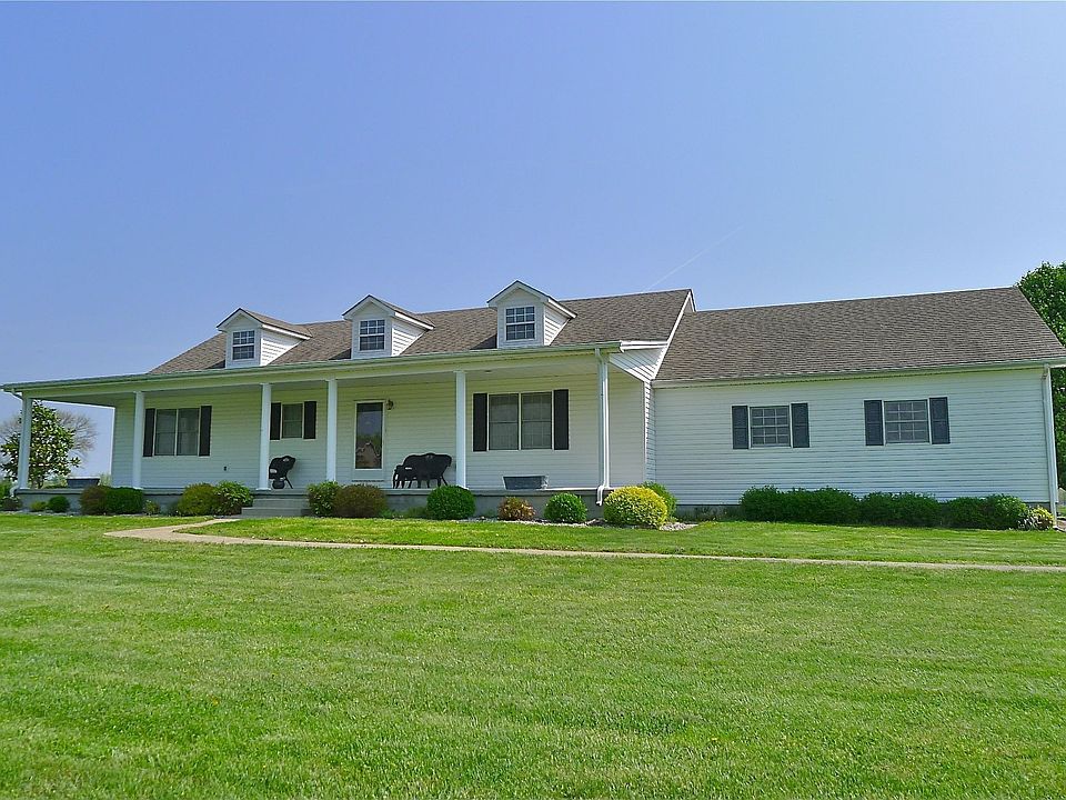 Bring your horses! Immaculate 4BR/3BA ranch on full finished w/o bsmt sits on a breathtaking 4.83ac mini-farm w/ pond, fenced field, & 3stall barn w/ tack rm. Home - 1st Fl: Welcoming foyer, cozy Living Rm, huge eat-in kitchen w/bar & sitting area, 2BR inc. a lg. master suite w/ private BA & WIC. Bsmt boasts:2nd Kitchen, open family rm w/gas FP, BA, & 2BR! Scenic covered porch spans rear of home! Extra features include: 2 Utility Rooms - 1 in 1st floor hall & 1 in basement (currently used). 2nd Kitchen in basement. 3 stall barn w/ tack room, & cross ties, plus a Storage building. Grape arbor. Stocked pond. Gorgeous views! Walkout basement w/ poured patio under covered porch! Priced to Show & sell!