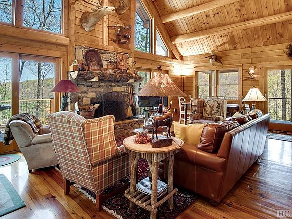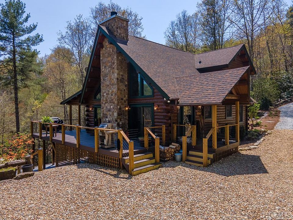 This sweet log cabin is serenity at its finest. Located in the Blue Ridge Mountains on 5.27 unique acres with a great mountain view, streams and fronts on Robinson Creek for the fly fishing enthusiast or have fun exploring. It is the perfect place to get away from the hustle and bustle of city life. The solid log cabin has been kept pristine by its original owners and offers a well thought out open floor plan. Home is being sold mostly furnished including a side by side to get around the neighborhood in. The main living area features soaring ceilings with beams and lots of windows to let in the natural light. There is a wood burning fireplace in living room to warm up by on a chilly mountain day and plenty of firewood that comes with the home. There is a spacious master bedroom on the upper level with unique stone tub/shower surround. Nice private setting so you can sit on one of the many covered or open decks while you enjoy the sights and sounds of peaceful nature surrounding you. Just a few steps off the right side of the porch leads to a firepit with beautiful hardscaped gardens and a pathway that leads to one of the streams with chairs right by the stream to relax and listen to the soothing sounds. One of the few subdivisions that borders 6300 acre Panthertown Valley National Forest, Laurel Falls is a gated rustic subdivision with larger tracts of land. There is a well appointed grocery store in the village of Cashiers, NC that you can be at in 1/2 hour. Enjoy one of the many gourmet or family style restaurants offered in the area or shop at the boutiques that line Highways 64 and 107. The town of Highlands, NC is 20 minutes from Cashiers, so you will never run out of things to do here. So, what are you waiting for? Call today for your private showing.