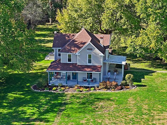 This original Garringer home combines character with modern updates. The wooden staircase, trim, and doors were made from trees on the property, preserving a piece of its history. Inside, you'll find a remodeled kitchen with custom cabinets, a pantry, and a sleek dishwasher that blends with the cabinetry. The bathrooms have been remodeled, and the home also features new insulation, subflooring, flooring, furnaces, heat pump, siding, gutters, water system, and more to ensure it's truly move-in ready. Main level offers a living room with a wood-burning stove, a family room with a decorative fireplace, a bedroom, and a dining area that opens to the side patioperfect for entertaining. Upstairs, are 2 additional bedrooms and a newly added full bathroom complete with upstairs laundry. Outdoors, enjoy the best of both worlds: a large, flat yard ideal for gatherings & wooded acreage to explore and enjoy nature. Sitting on just over 5 acres, it is surrounded by farm land for peaceful living.