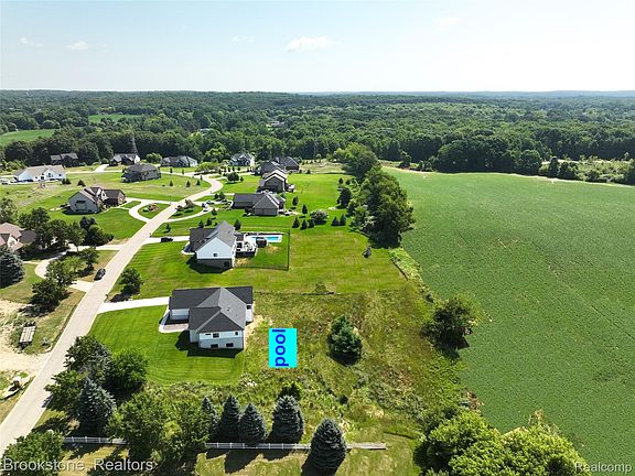 Location, location, location! Just a hair north of Oxford you will find the hidden treasure called Highlands of Metamora with custom newer built homes sitting on generous parcels. The architectural style of this home is a perfect blend of Modern Farmhouse and Craftsman elements. You will appreciate the modern farmhouse with white brick, dark-framed windows, vertical white siding on the gables, and the overall clean lines and simple aesthetic. Whereas the prominent gabled entryway with exposed dark wood beams and corbels, and dark trim details bring in the Craftsman style. This ranch style home can suit every buyer with easy living on one floor, and a walk out lower level for you to expand into as necessary. The functional and open floor plan inside offers a split with primary suite on the opposite side as the other 3 bedrooms. The chef’s kitchen features quartz countertops, a drawer microwave, large pantry, and loads of storage. Airy and bright with plenty of natural light, the kitchen flows seamlessly into the spacious great room with upscale stone face gas fireplace. Thoughtfully designed for convenience, the service entry includes a half bath, a generous family foyer mud room with a drop zone, and plenty of storage to keep things organized. The luxurious entry level primary suite is a private retreat, complete with a 12x6 walk-in closet, dual sinks, soaking tub, private water closet, and lockable access directly to the laundry room! Each bedroom boasts its own walk-in closet and attached bath, including a Jack & Jill bathroom with a private shower and toilet room — making sharing a breeze. Lower level includes a walk out that is ready for your imagination. This home effortlessly combines practical features with upscale finishes for comfortable, everyday living. Come see it and fall in love!
