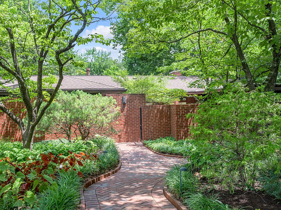 bathroom looks out into a private brick courtyard area. Two bedrooms on the first floor and one in the basement with another full bathroom and family room. The private backyard is truly exceptional and goes beyond the creek for outdoor enjoyment second to none inside New Circle Rd. Call your favorite Realtor now for a private showing of this very special property.