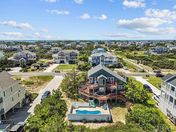 This charming Oceanfront Cottage beckons you in with its landscaped yard and ample parking. Reminiscent of days when spending a beach week on the Outer Banks was like heading to the edge of the world; a hidden oasis. The interior welcomes guests with a centralized kitchen and oversized island for dining. Two separate living areas sit on each side of the kitchen giving guests plenty of room to spread out and relax. The juniper wood tongue and groove ceilings and the gas fireplace (currently not hooked up) add to the cottage charm of this seaside getaway. The first floor also hosts two bedrooms; each with two twin beds allowing for multiple families to enjoy vacationing together. Following the whimsical spiral staircase to the top floor takes you to the two principal suites. Each suite has a private balcony, room for a King size bed and ocean views! When the outside beckons you, sunning by and swimming in the backyard pool or jumping in the hot tub is the perfect place to unwind. But, of course, the beautiful Outer Banks waters and wide Corolla beaches are an easy walk over the well vegetated, protective dune so that you can enjoy Oceanside fun as well as pool lounging! This home is a quick bike ride to shops and restaurants making it a perfect getaway location. “Mother Earth, Father Sky” is a special home that will please anyone looking to recapture their childhood days spent on the Outer Banks! Endless possibilities on this large lot with a stable, vegetated dune! Be sure to view the virtual tour by clicking link or cut/paste into browser: https://my.matterport.com/show/?m=Haece8PaPKA Seller has signed with Carolina Shores for 2023.