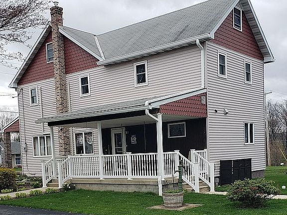 Two stories, plus basement, attic, front and side porches, new gutters and down spouting, New windows upstairs, new Mitsubishi mini splits (heat & air). Major appliances included ( washer, dryer, refrigerator, freezer, dishwasher, microwave, range). 40'x28' garage with attic, two full 7'x10' overhead doors, two man doors, office and work shop area, heat, electric, cable and lan. Large 40'x20' shed with full 8'x10' overhead door, man door, rolling door, 9' ceiling in area of overhead door, electric. Open ended 20'x20' steel shed. Large garden, fenced and gated. 8 fruit trees (2 Apple, 2 Cherry, 3 Pear, 1 Peach). Macadam driveway and large parking area. Basketball hoop, Led dusk to dawn light, Cistern with hand pump.