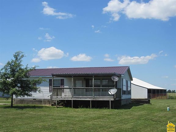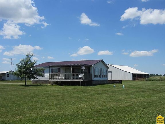 PEACEFUL is the best word to describe this property. You can sit on the covered deck and watch the sunrise and the sunset. It has a 3 bedroom, 2 bath home with several outbuildings. There is a large equipment building, a detached garage and a building that was going to be used as a dog kennel. The pasture is all fenced with newer fence.