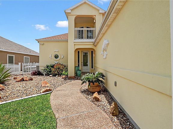 Welcome to this beautiful Spanish-style home in prestigious sea-gated Pelican Cove. The gourmet kitchen features a Viking 6-burner gas range, stainless appliances, and a sunny bonus room. Downstairs primary suite offers stunning waterfront views, patio access, a spa-like tub and separate shower, as well as a large walk-in closet. Upstairs are two bedrooms with balconies overlooking the water, a full bath, and a second living area perfect as a game room. Expansive back balcony to relax or entertain. Two new boat lifts await your coastal adventures. Minutes to prime Texas fishing and Port Aransas Ferry. Most furnishings are negotiable with an acceptable offer.