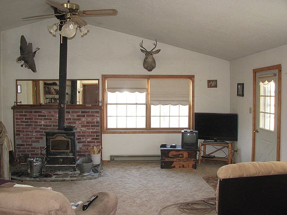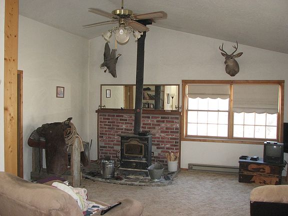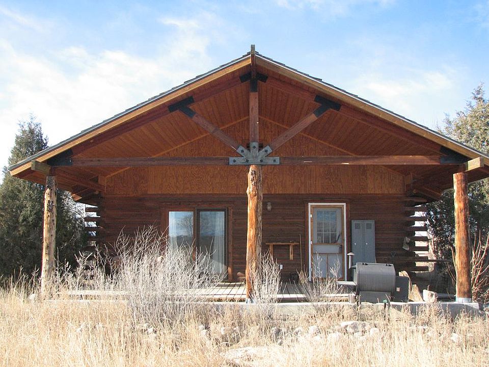 11 irrigated acres with live water for livestock. 1008 sq. ft. 2 bedroom, 1 full bath log home with an open kitchen/dining/living area, mud/utility room and a covered deck. Outside you'll enjoy the mature trees and privacy. The property has a separate office building with room for storage and a 1 car detached garage. Also included is a metal three siding building for hay storage or farm equipment.
