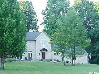Stunning stone Colonial--Koenig built! On top of a hill on 9.8 acres w/add'l land available. Maple flrs, cherry cabinets & woodwork. Antique solid wood doors, leaded glass, imported crystal lighting, stone patio. Carved antique mantel over woodbrng F.P. 9' ceilings