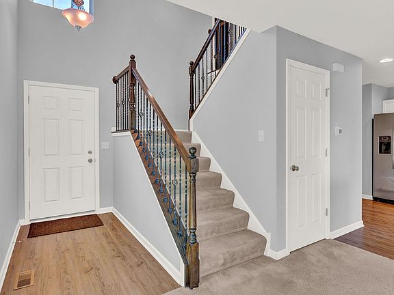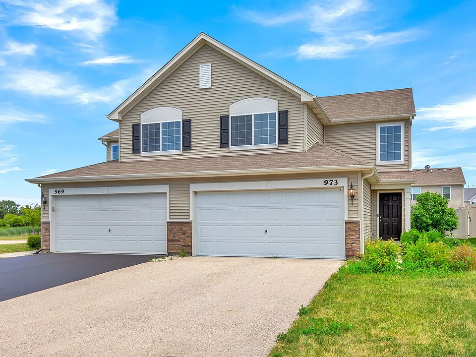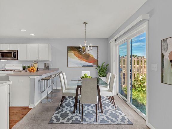 Welcome to your new home with NO MONTHLY HOA fee, and a full backyard oasis! This newer duplex showcases a spacious open concept floor-plan, high ceiling entry way, and tons of natural light. The expansive living area is open to both the kitchen and dining space, making this home an entertainers dream! The modern all-white kitchen boasts ample cabinetry for storage, lots of counter space, a full pantry, recessed lighting, and a convenient breakfast island. Adjacent to the kitchen, the dining area comfortably seats a table of 6 and provides the perfect setting to gather and entertain. Upstairs, three generously-sized bedrooms await, complete with ample closet space, 2 full baths, a ceiling fan in every room, and the added convenience of second-floor laundry. The primary bedroom features a walk-in-closet, AND an attached en-suite bathroom. Outside, the large backyard is almost fully-fenced and is perfect for entertaining family and friends for a summer BBQ. Additional features include a 2-car garage, expansive attic storage, a spacious driveway, and a large lot, all nestled within a desirable neighborhood with NO monthly association fees! Conveniently located just minutes from downtown Hampshire, highly desired schools, I-90, shopping, restaurants, and community parks, this home offers the perfect blend of convenience and comfort. Whether you're seeking your forever home or an investment opportunity, this is a must-see property!