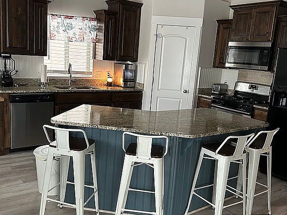 Beautiful updates home in highly desirable neighborhood close to schools, shopping, rec center ect. Large open kitchen dinning and family room, large family/ theatre area in basement, basement kitchenette, large storage room, nice RV parking, fully fenced finished yard, large covered deck out back ect. No realtors please