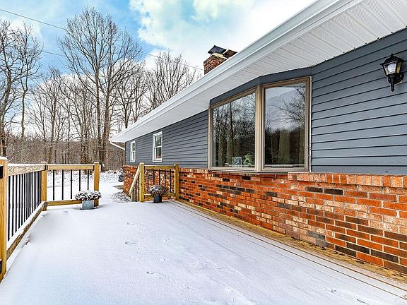 Updated, well-maintained 3 bed 2 bath ranch home nestled on 2 acres! Living Room features wood-burning fireplace & pass-thru to updated eat-in Kitchen w/ walkout to patio. Master bedroom offers adjoining bath. Part-finished basement has dry bar, cozy pellet stove & walkout. 2 car attached garage. NEW 2017 roof, HVAC & HWH, plus many other updates throughout!