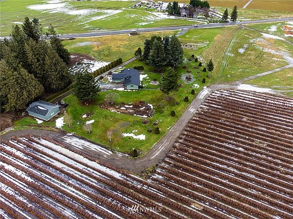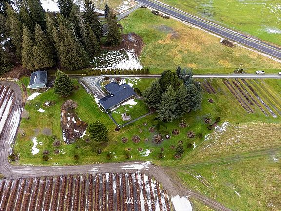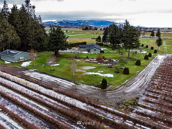 Situated next to acres of blueberry fields, this Chuckanut Drive rambler offers serenity, panoramic views of the Olympic mountains & more. Sip your morning coffee while enjoying gorgeous sunrises to the East, and Mt Rainier to the South on a clear day. New carpeting throughout. Kitchen updated with quartz counters, tile backsplash and vinyl plank flooring. Large living room with wood insert. 3/4 bath off Primary bedroom. Ample built ins and storage throughout. Roof replaced 2021. Meticulously landscaped 2.66 acres includes a variety of well-cared-for fruit trees and berries. PUD water + a well for irrigation. LARGE 42x30 shop! Elevation certificate completed- no flood insurance required. Preinspection performed. This one won't last long!