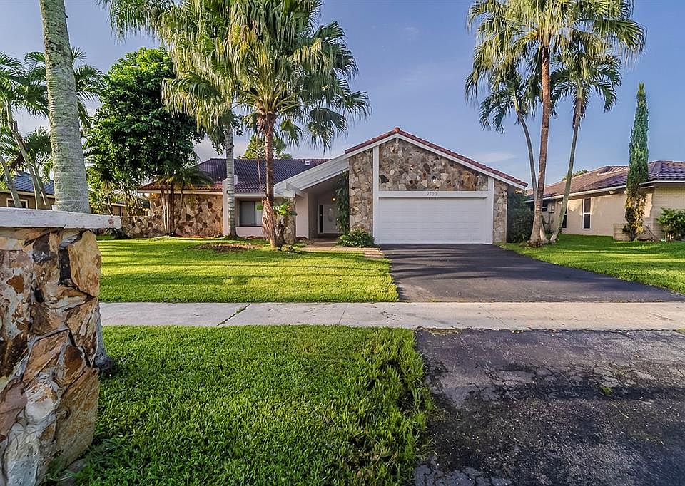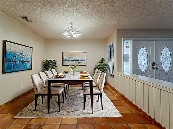 Charming 1-story home offering 4 bedrooms, 2 baths, and a 2-car garage. Enjoy a spacious open floor plan featuring wood beams in the living room and primary bedroom, a cozy custom seating area around the fireplace, and a beautiful custom kitchen with stone veneer wall accents and decorative brick backsplash. The breakfast area and dining area provide plenty of space for meals. Both bathrooms feature double vanities, and the laundry room adds convenience. Step outside to a spacious back porch with a private inground pool and spa under an enclosed lanai. Double door front entry adds to the welcoming appeal. One or more photos have been virtually staged. Schedule a showing today!