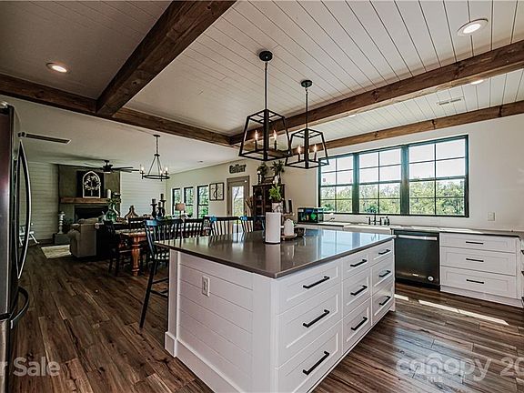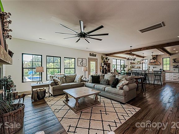 Chip & Joanna inspired modern farmhouse on 5 acres! Bring your cows, pigs, chickens or just enjoy the peace of 5 acres w/walking trails, pasture, salt water pool, rocking chair front porch & more! Kick off your boots in the beautifully designed mudroom w/shiplap & herringbone brick floor. Enjoy cooking in your kitchen w/farmhouse sink, wood beams, wood plank ceiling, quartz counters, soft close cabinets, SS appliances & view! The lg island is the perfect place for entertaining. Open floorplan provides great flow & light w/beautiful 7in oak flooring on main. Cozy living room w/shiplap accent wall & faux concrete surround wood fireplace is is open to kitchen & dining. Close the barn doors to your den, home office or shut the mess from the kids playroom; The space can fit whatever your needs. 2nd floor has 4 spacious BR's & laundry. Primary has great ensuite w/tiled shower & walk in closet. Above the 2 car garage can be guest house w/roughed in plumbing & electrical. Ready for YOU!