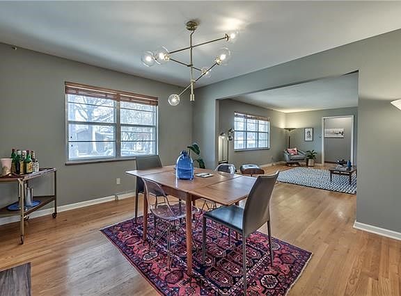Extremely solid, impecccably maintained 1959 Mid-Century Rambler (with many original features) on fabulous street of $1M+ homes. The possibilities are endless- could move in and enjoy as-is, or build up or down with egress in the large finished basement...all on nearly half an acre in Leawood Estates! All brick exterior with new soffit paint a week old...Pristine hardwoods throughout- Only carpet is in DRY basement. Basement Reno would be a breeze since it already has a full bath! Backyard features brick paver patio, pergola, lots of flat space, and a landscaped privacy screen from the neighbors!