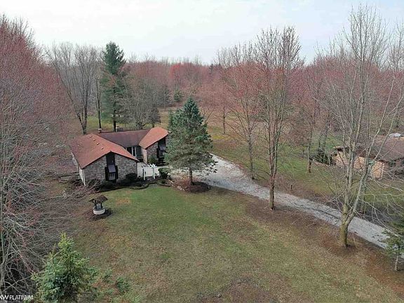 Unlimited potential to make this home your very own! 3 Bed, 2 Bath ranch that sits on just over 2 acres and in the perfect country setting! Gorgeous property with lots of mature trees and so much privacy in the back yard. Great room has wooden vaulted ceiling and a large natural wood burning fireplace with access to the first deck. Thick crown molding throughout the home! Huge eat-in kitchen with can lighting and access to the second deck. Custom desk nook on one side of the kitchen. Large first floor laundry room. Master bedroom has WIC, ensuite bathroom and vanity. 2nd bedroom also has a WIC, and 3rd bedroom has a large closet. So much storage space! Open basement with workroom. Located just off a paved road!