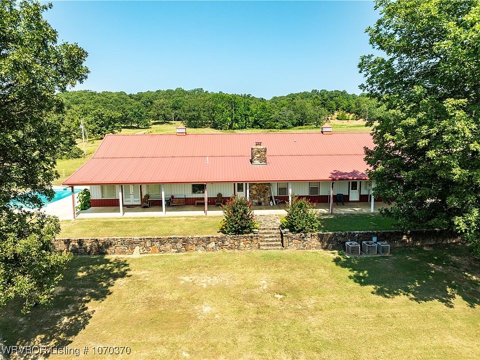 Wow! Enjoy the amazing views of the river valley, 2960 sq ft heated Barndominium, open floor plan, 3 bed 4.5 baths, each room has its own full bat and the primary on- suite has 2 full baths, 2 huge walk-in closets with built in's 3 car garage, approx. 2000 sq ft of porches, this 185 acre property with inground pool and huge concrete floor barn, pipe fenced corral.