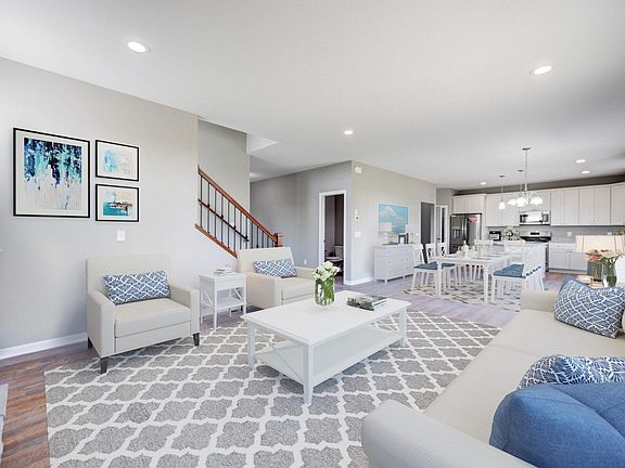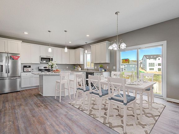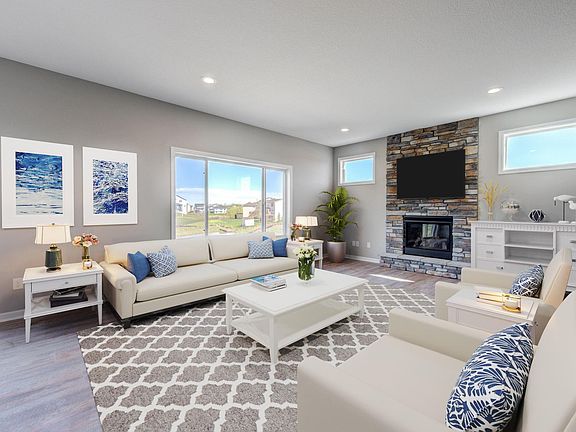 Spacious 2-Story Walkout features walk-in closets in all bedrooms. 1000 sq Ft. Huge Insulated garage for all your vehicles and toys. . Check into St Michael Schools open enrollment (bus picks up in front of development). Very quiet area. Big kitchen with center island featuring White Cabinets, gas hookup for range, Grey Granite Counters! 2nd Floor Laundry. Large Master suite with bed room sized closet. Master bath with double sinks, shower with separate soaking tub. Main Level office. Additional Upgrades Include Vinyl shake and Board and Batten front siding, Stone Fireplace, Granite Kitchen and Center Island, Granite Bathroom tops, 9' Main Floor Ceilings, 408 sq.ft. added to Garage, Wide Driveway. No Landscape or Appliance allowance at this price. All Basements are walkouts. Upgrade Options not included: Basic Landscape package including 2 trees, 5 bushes, Sod Front to Back and sprinkler System $13,000. 2 Zone Heating is $4000, Finished Basement $50,000.