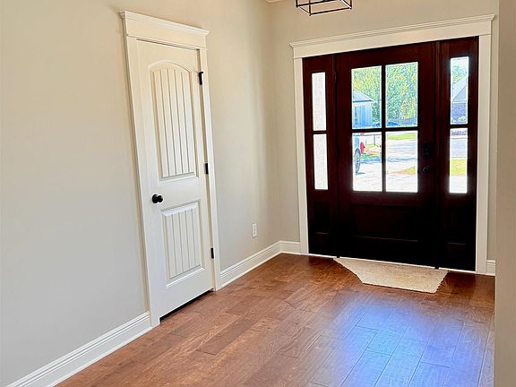 This New home is located at the end of a quiet cul-de-sac in the popular Tealwood neighborhood. This open concept, split bedroom design offers 9’ ceilings throughout, 3cm granite counter tops, upgraded painted cabinets, decorative wood hood, farmhouse sink, stainless steel appliance package, under cabinet lights, wood flooring throughout foyer, living room, dining room, kitchen and hallways, oversized soaking tub and separate tiled shower in primary bath, double courtyard entry garage, brick to ground construction, wood front door, under soffit lights, wood burning fireplace with granite surround, crown moulding and cased windows throughout, professional landscape package, Gold Fortified and much more. Buyer to verify all information during due diligence.