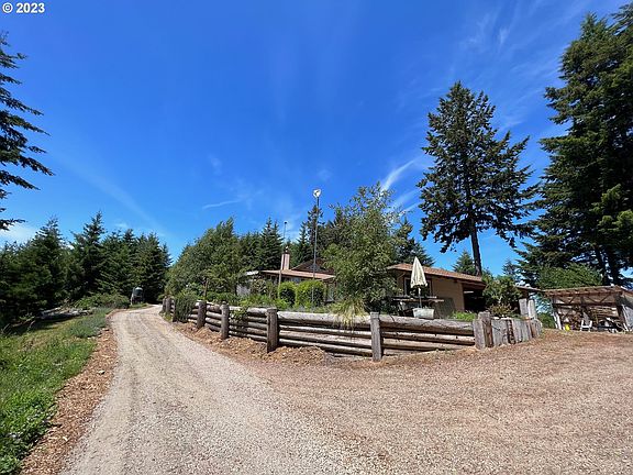 Sit on the enclosed deck listening to the Grossbeaks, Thrush, Quail, and Hummingbirds while you watch morning sunrises over the Coast Range and evening sunsets on the Pacific Ocean. This 10-plus acre gardeners' paradise offers established flower gardens, a small orchard with apples and plums, a greenhouse laded with ready to harvest tomatoes, raised garden beds on three sides with established blueberries and asparagus with lots of room for garlic, vegetables and herbs. The woodlot is home to Douglas Fir, Shore Pine, Incense Cedar, Western Red Cedar, Port Orford Cedar, Sitka Spruce, Birch and a few Redwoods. The home features many custom touches with a warm, open floor plan and a distinctive fireplace in the great room. The spacious master bedroom features a walk in closet while the 2nd bedroom provides views to the west. The kitchen hosts a large 6-burner gas cooktop, electric oven, built-in microwave, and almost 30 linear feet of custom concrete countertop plus a hand-crafted breakfast bar constructed of local Myrtlewood. There are bamboo and tile floors throughout with lots of windows. The large master bath includes a soaking tub while the second bath offers a large walk-in shower. The 3-sided, enclosed wrap-around deck is accessed from the mudroom, living room and front entry with a sun room accessed from the master bedroom to drink you morning coffee. The mudroom has a dutch door access to the kitchen and is insulated on all walls for canine comfort during thunderstorms. The spacious detached 2-car garage has a workshop area, plant room, attached greenhouse, and lots of built in shelving. A wrap-around driveway encircles the home and garage. The large, enclosed courtyard provides an extended season usable outdoor area while sliding glass paneled barn doors on the east side can be opened to allow cool breezes on warmer summer days. End your day with a walk through the woods, including access to the BLM lands bordering the east side of the property. No drivebys!