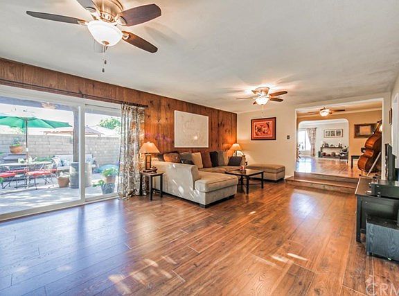 Reduced $20,000! Gorgeous 3 beds 3 baths home in a great neighborhood of Garden Grove. Freshly painted on the interior and exterior with all new water conserving landscape for that great curb appeal. You will love the large living room and dining room with hardwood flooring and crown moldings. The kitchen is updated with granite countertop, tile backsplash, and newer cabinets. The large master bedroom features an updated bath (not permitted) and a large walk-in closet. The 2 hallway bathrooms are large and one is remodeled with a large walk-in shower, designer tiles and fixtures. The large add-on family room features new Pergo laminate wood flooring and 2 new ceiling fans. Lots of newer upgrades including dual pane windows throughout, composition roof, smooth ceilings, crown moldings, and solar system that is owned, not leased for tremendous electricity savings. Through the 2 new sliding doors from the family room, the large back yard and side yard garden offer a swimming pool as well as an area for the green thumbed gardener with many fruit trees, and a cute 10ftx9ft room with insulation and window.Enjoy the family oriented neighborhood with close proximity to schools, shopping and freeways. Move-in ready and priced to sell quickly!Home is immaculate.