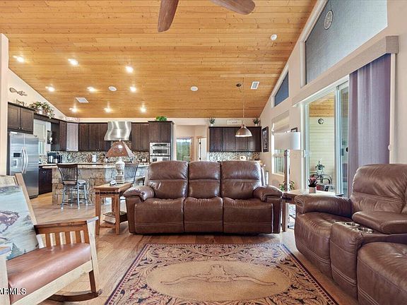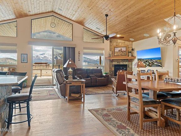 The single level Slayton ranch home has a split floor plan and spectacular views of the San Francisco peaks. Exterior has RV parking with hook ups, two horse stalls with a tack room and access to water, and a storage shed with electricity for all your outdoor toys. The interior has a great room concept with wood floors, vaulted ceilings, and a fireplace. Kitchen has stainless steel appliances, breakfast bar, granite countertops, gas cooktop and convection microwave. Home has recently been updated. Proximity to trails for riding. This mint condition home won't last long!