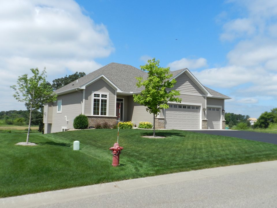 This is a beautiful rambler style home, has a wide open floor plan. Main floor features private master suite with walk-in closet and spacious bath room. Living rm, dining rm and kitchen, along with den and (4) season porch with attached deck. Basement is a walk-out, has two large bed rooms, one has a walk-in closet. Family room, Rec area with wet bar and exercise/storage room. It also has an enclosed porch under the (4) season porch. Best features of our home is the open floor plan and the view of the golf course behind.