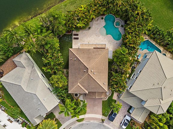 Located in the luxurious Olympia community, this 5 bedroom, 4 bathroom house with swimming pool on a 9300 sq.ft. lot on the lake is a must see. A tropical oasis cloistered by palms in the heart of Wellington. Double sliding hurricane doors open to the loggia and expansive patio with a lagoon style Pool and Spa with an engineered turf side-yard and rock garden pathway to the lake. - Whether it's time to watch the game, play a game or use as a quiet workspace any time, the 2nd floor loft gives the whole family another space to be creative. - You'll love the upscale island style in the great room where you'll instantly feel at home with friends & family. Enjoy the large private Owners Suite balcony overlooking the pool & patio with the feel of a secluded tropical garden.