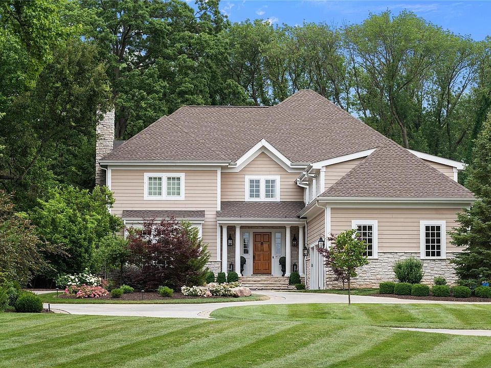 Truly an incredible opportunity for a stunningly impressive residence located in the heart of Ladue. This meticulously maintained home contains over 5800 sq ft, plus a finished lower level and a pool house. The home is situated on approximately 1.33 acres at the end of a private street. 5 bedrooms, 8 bathrooms (incl. pool house), 10 ft ceilings throughout and 11 ft in the primary bedroom. Gourmet kitchen with Viking appliances, great room with custom millwork, & custom woodwork throughout. All bedrooms have walk-in closets and ensuite baths. Bonus sitting room upstairs. The private backyard oasis is an entertainers dream! Stunning stone fireplace, gas fire pit, the pool and spa are surrounded by an impeccable pool house with a kitchenette, sitting area and a full bath. This home displays a "simple elegance" and is an absolutely "must see" for your most discerning purchaser.