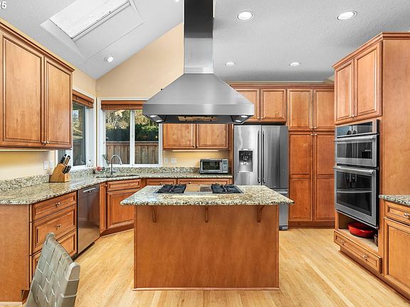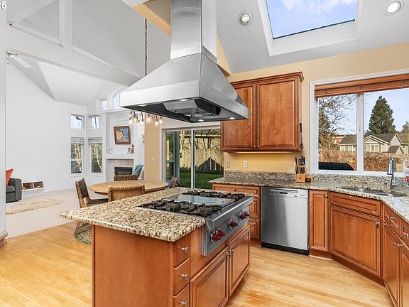 - Features: Builtin Range, Dishwasher, Eat Bar, Gas Appliances, Island, Microwave, Nook, Skylight, Builtin Oven, Free Standing Refrigerator, Granite, Vaulted Ceiling