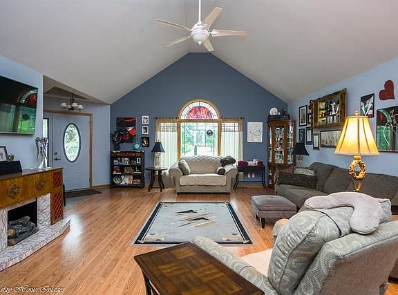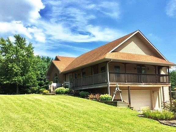 Nicely landscaped country estate of 4.4 acres in rural Lowell one hour from Chicago, one mile from US41, and a short distance to town. This hillside walk-out ranch with balcony includes 3 bedrooms with 6-panel wood doors, 2 3/4 baths, wrap around porch, and a patio which includes a hot tub on your expansive deck beside the decorative waterfall. The heated garage has room for storage in a separate room. The hardwood steps lead up to main level featuring vaulted and treyed ceilings in some rooms, a finished lower level and even a pulley operated dumb waiter. The 30' x 40' pole barn with asphalt floor has a workbench with lots of space for your yard implements. Property includes cute garden house for storage as well. The house is roofed with 50-year asphalt shingles, the furnace is high efficiency, and the home has CAT 5 wiring.