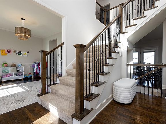 You will love the soaring entry way and open floor plan. Main level boasts gorgeous hardwood floors, formal dining which could be a play area, sitting area, or lounge. Living area has plenty of built ins to display what you love.